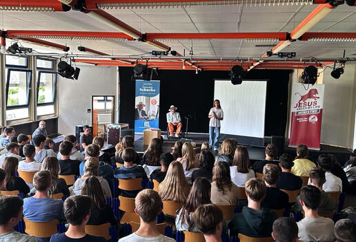 Der letzte Einsatz vor der Sommerpause führte uns in die Realschule nach Altötting. Vor mehreren neunten Klassen erzählte Josef seine Lebensgeschichte und war besonders bedacht, grundsätzliche Werte den Schülern zu vermitteln. Pünktlichkeit, Sorgen abladen bei den Eltern oder Lehrern (aber auch bei Gott), Verzeihen lernen und Neuanfang.. viele Werte nahm Josef bespielhaft aus seinem Leben und vermittelte sie aus Erfahrung und warnte vor Geldgier und Pornosucht, Drogen und Alkohol