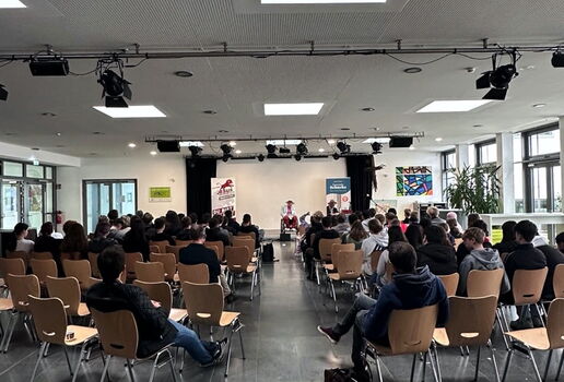 Der letzte Einsatz vor der Sommerpause führte uns in die Realschule nach Altötting. Vor mehreren neunten Klassen erzählte Josef seine Lebensgeschichte und war besonders bedacht, grundsätzliche Werte den Schülern zu vermitteln. Pünktlichkeit, Sorgen abladen bei den Eltern oder Lehrern (aber auch bei Gott), Verzeihen lernen und Neuanfang.. viele Werte nahm Josef bespielhaft aus seinem Leben und vermittelte sie aus Erfahrung und warnte vor Geldgier und Pornosucht, Drogen und Alkohol