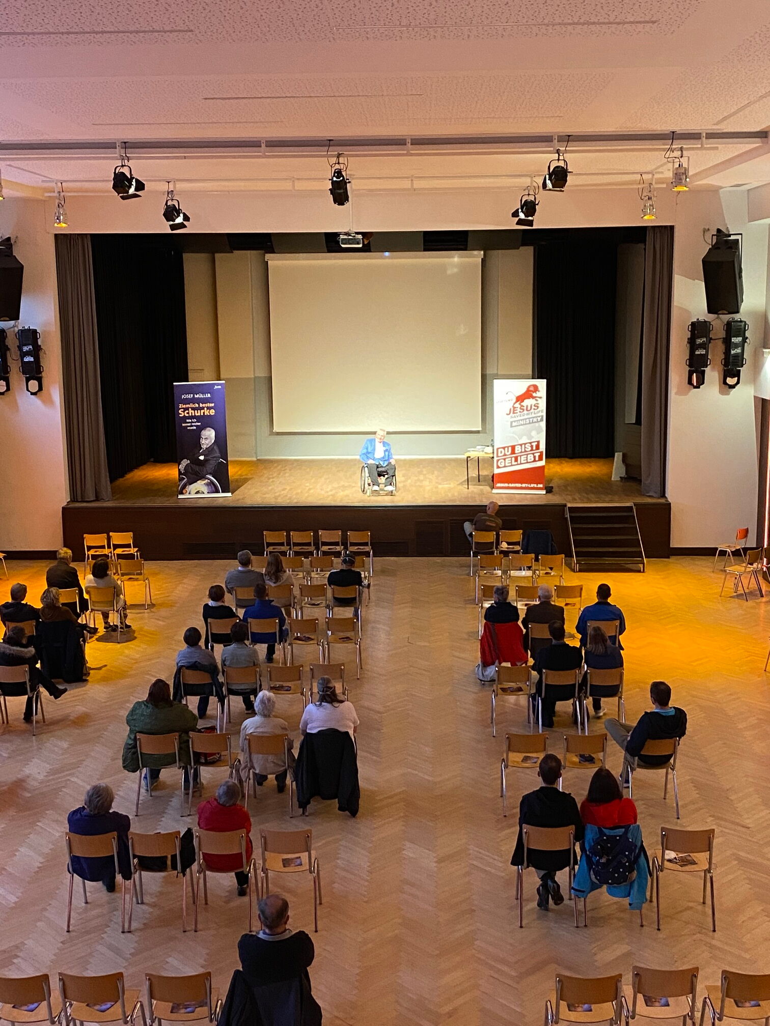 Durch die Einladung von Franz Wimberger und Max von JESUSCREW sprachen Sara und Josef am Freitagabend in der Turnhalle in Perg. Junge Menschen die offen waren für das volle Evangelium. Auch hier mussten die Abstandregeln eingehalten werden, aber die Halle war groß genug.